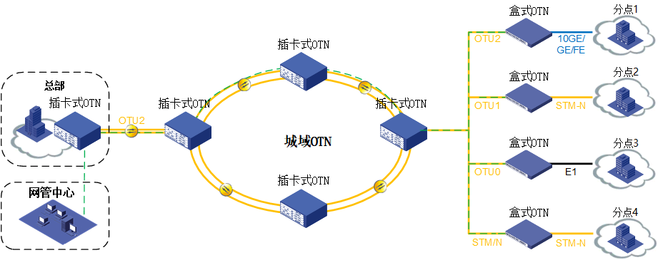 可接入MSTP、分組、OTN設備,支持E1、FE/GE、STM-N等業務接口,可根據客戶網絡特點提供相應的接入方案。